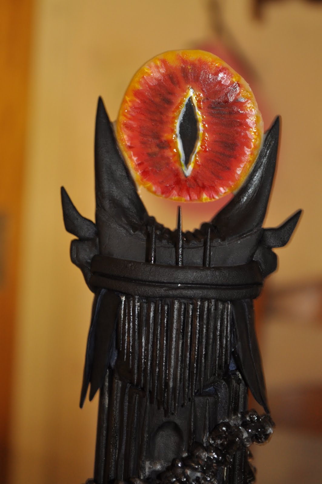 Den här stackarn med röda rosetten blev inte så lyckad. Eftersom jag inte hade någon röd sugarpaste hemma så försökte jag (igen!) färga min egen sugarpaste rött. Och - som vanligt - är det jättesvårt att få den rött och till slut blev det så mycket färg i den att den började bli smulig nästintill så att det inte gick att kavla ut den. Jag har till slut lyckats få någorlunda bra öglor och sätta ihop dem till en rosett men medan jag dekorerade andra tårtor råkade jag mosa rosetten med armbågen så att vissa av öglorna sprack. Nej, det gick inte så bra för det här lilla paketet. Men, men. Det fick stå med alla andra i alla fall.